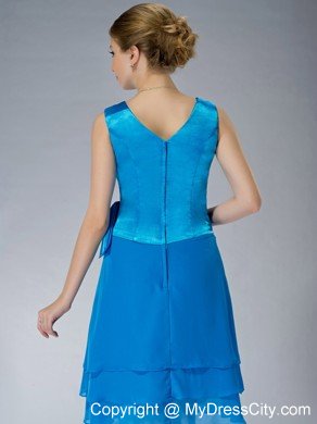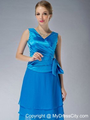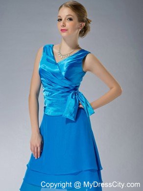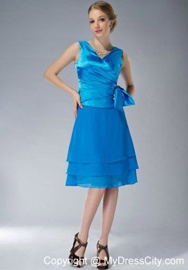Looking for a flattering short dress? This gown is simply gorgeous! This perfect dress with a V neck and a whole pleated bodice design. The chic wide bands decorate your waist to flatter your perfect figure. Many tiers of the knee length skirt create a sense of romance. Hidden zipper up back completes the look. It shows your taste when you wear this dress!