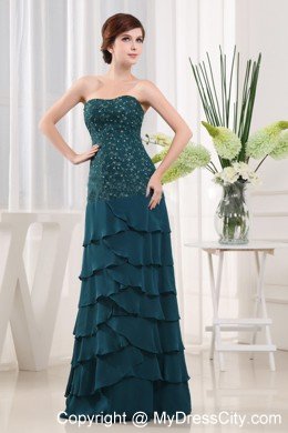 Can not decide wear which one to attend the special day? Get this gorgeous teal dress for your prom, formal evening and the celebrity. It features the strapless ruching bodice, which is heavily embellished with dazzling beadwork. Romantic chiffon fabric forming gorgeous layers falling down to the floor. The floor-length skirt is smooth and elegant. The simple zipper up completes the look.