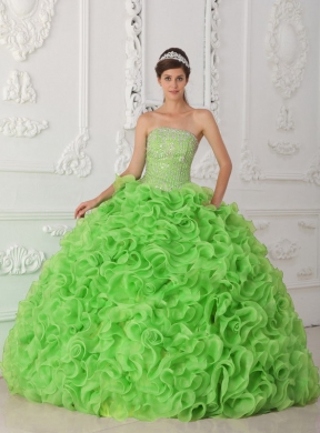 Strapless dresses are one of the sexier styles on the market today. They show just enough skin to be classy without beingtoo revealing. The bodice is is accented with scattered crystals and beadings.The full skirt features rolling flowers,which makes the dress very luxurious.