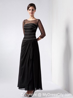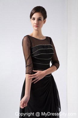 If you are still thinking about waering a simple yet extraordinary dress to the party.This one is to your taste! It features a half-tansparent bodice up to the chest and the bodice is adroned with well arranged silver liner bead works that perfectly modify your seductive figure! The ruched A-line skirt falls down naturely to make the dress more full and lovely!
