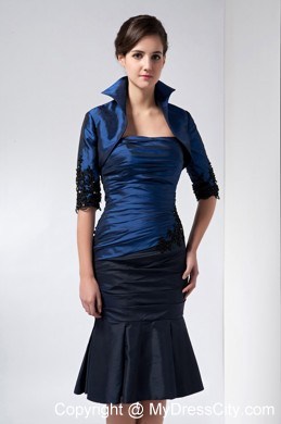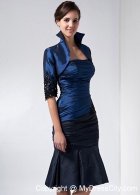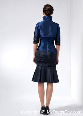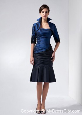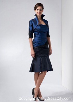 You still don't know what your dress will look like? This mixed color short dress must be your best choice! This fabulous dress features with strapless bodice. Intensive pleats on whole dress highlights the style. A sweet beaded appliques on left skirt is lovely and adorable, which will always attract attentions of all. The matching jacket with appliques in cuff of sleeves will also help you to hide the blemish of your arms. The unique design and special style lead the fashion all the time and you can't miss it!