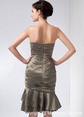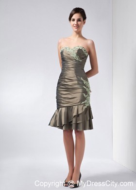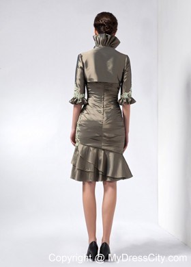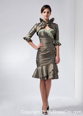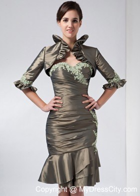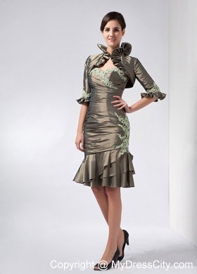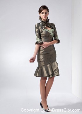 Get the attention you deserve in this sexy short dress! This elegant dress features a beautiful strapless bodice with a sweetheart neckline. The whole bodice is ruched all the way to the hip part and is emphasized by cute appliques in neckline. The short skirt falls from the hip part creating a wonderful silhouette. And if it is needed, a matching beautiful jacket will give you more modesty in any formal occassion. This creation show your powerful personality perfectly!