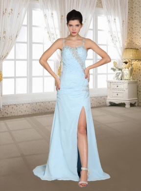 Are you still looking around a fantastic dress for your big day? This prom dress is the best choice for you. Sexy fitted dress is covered in intensive clear crystals. Fitted bodice features beaded slim straps. The hightlight is the intricate shining beading adorning the sweetheart bodice and cascading down the bodice. The dress sways beautifully across the floor when you move, as if you're floating on air. A seductive side slit lets you glide across the dance floor with ease. Fitted and flare gown opens a slim a-line skirt with train flattering your sexy silhouette! A zipper up style closure in the back secures the dress in place.