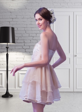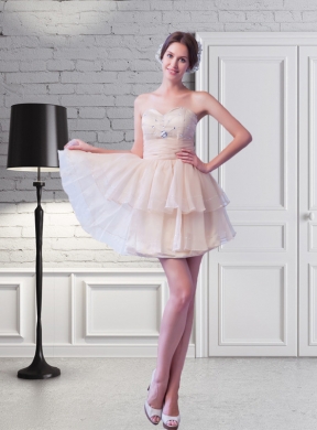 This dress will make you the talk of the big day! Fashionable sweetheart neckline with sparkling beading accents on the corset bodice to make the dress stunning. The pleated waistband adds some cute on the dress. The mini-skirt is unique shaped by layers of ruffles which make the dress a little puffy. Sweet and sassy!