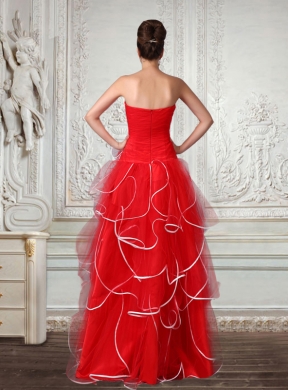 If there is a kind of fabric that every girl want to wear, then it must be organza. Light, dreamful and comfortable organza is always the favorites of the designers to make dresses. It features a strapless pleated bodice and spread skirt, white hem trim decoracte the layers of organza make you feel you are fairy dancing in the flowering shrubs. Thus, this gorgeous red prom dress will conquer countless hearts of women.