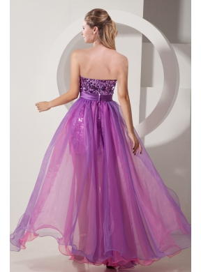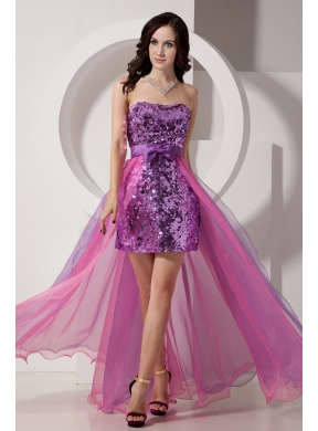 The perfect prom begins with the perfect dress, and this is it. Strapless sweetheart neckline with stunning sequins throughout the dress. Layers of soft tulle train create a flattering high-low style, and will swing on the dance floor. The mid-section band decoreated with the bow create a cute look also show out your pretty curves.Hiden zipper up back for a sexy, easy fit. A stunning dress for those occasions when you really want to 'wow' the crowd.