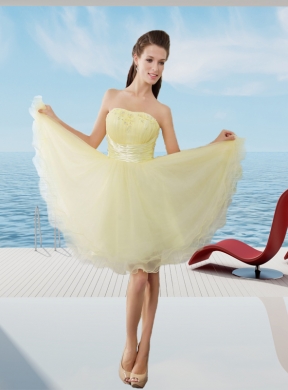 If you're looking for a dress full of femininity and girlish charm, this is it! The strapless bodice features gathered pleats of net/tulle and silver rhinestone embellishments throughout. A coordinating waistband continues the gathered theme across the bodice to the back of the dress, adding interest to the midsection. The mini-skirt of the dress falls to mid-thigh length in dainty folds of net/tulle fabric.