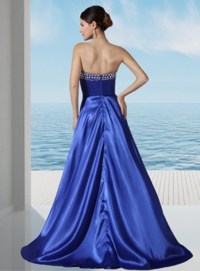 Do you want to experience the feeling of being the spotlight? This blue prom dress will make your dream come true. It features sweetheart neckline and exquisite ruchings embellished beadings, which defines your natural waistline. The strapless style and the high low skirt add the charm. A stunning dress you can't miss.
