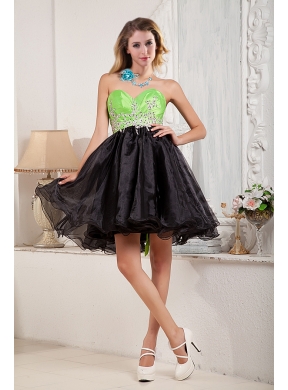 This two-toned dress is a perfecct choice to show your beauty on any occasions. The slim-lined bodice with a sweetheart neckline is adorned with exquisite appliques and beadings, while the mini-length skirt is pure with no redundant to contour your slim figure. The dress completes with a lace up closure.