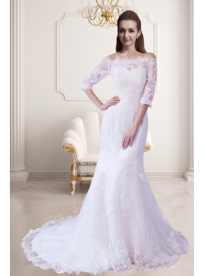 This one will put you to mind of a traditional southern belle, when you put on this white wedding dress! This beautiful creation has two tiers. One is accented with a modest sweetheart inside. The other one is characterized by the lace fabric throughout the dress out side, which beautifies the dress. It is highlighted with a waving neckline and off shoulder sleeves and a court train that cascades to the floor. A lace up corset style closure in the back secures the dress in place.