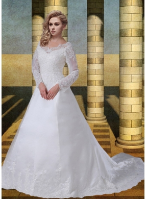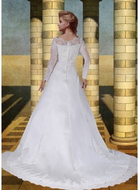 This white strapless wedding dress features a light V-neckline bodice with long sleeves in chic lace fabric that is fully embellished with intricate embroidery. The style of the dress is simple yet elegant. The floor length skirt flows beautifully with a lovely sweeping train that pools in a pond of fabric. The closure encrusted with fastener extending to the very bottom of the train, which makes the dress standout. You can't miss it. Take it home now!