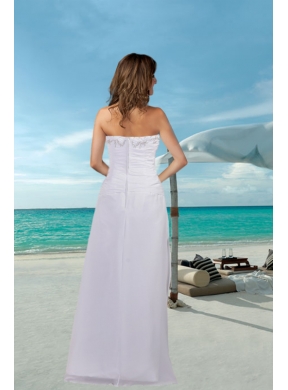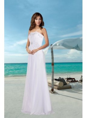 Look like you just stepped from the pages of a bridal magazine in this gorgeous designer-inspired gown. It is made from chiffon and features a strapless neckline and delicated pleated bodice with a a large area of beading. A slit is cut on the first layer of the skirt to creates a good shape. The back of the dress has a nice zipper up closure that secures the dress in place and completes this high end look. So elegant, so perfect!