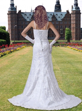 Romantic wedding gowns with vintage elements will always be in style - like this one. The bodice is fitted and hugs your frame to the hip area where the skirt begins.The sheer lace tulle is overlayed with the dress for accent. A lace up corset style closure in the back secures the dress in place.