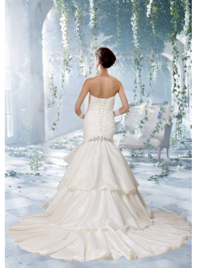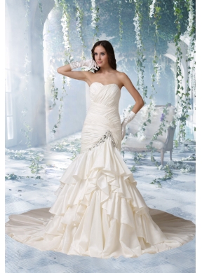 Have your cake and eat it too with this irrepressibly elegant fit-and-flare dress! Ruched fabric crowds from the sweetheart neckline to the hips which will definitely flatter your figure. The sleek empire waistline gives way to a body-conscious, fabulously ruched midsection. The crystals at the side is another unique design of the dress which will catch your eye. As for the skirt, its flared design is enhanced by showy, asymmetrical tiers. A hidden zipper up back finishes the gorgeous design.