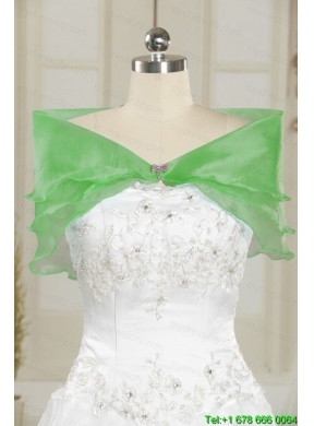 The dress does not include any accessories in the picture, such as wraps,jackets, gloves, veil, jewelry, etc.You may contact us to order the accessories separately.You could choose wraps for cold season and jacket for warm season.