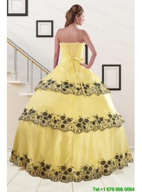 2015 Light Yellow Quinceanera Dress with Appliques and Ruffled Layers