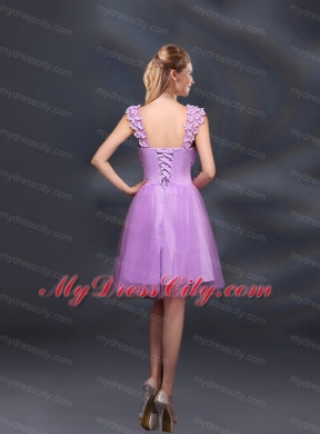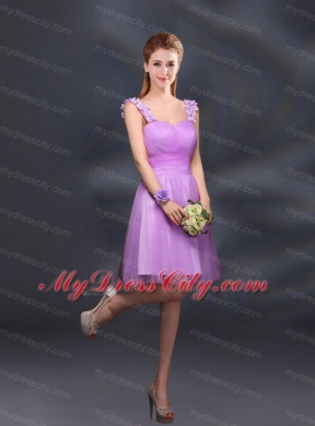 A Line Straps Appliques Bridesmaid Dresses in Lilac