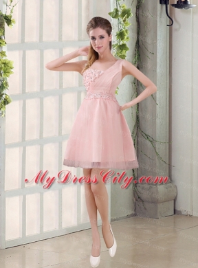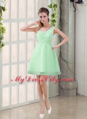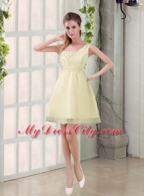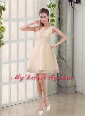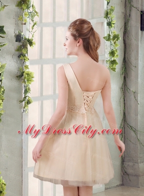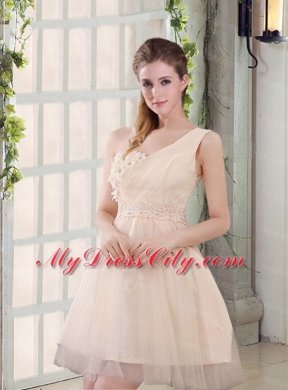 2015 Champagne One Shoulder A Line Appliques Bridesmaid Dress