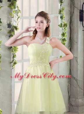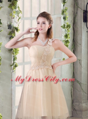 Popular A Line Appliques Bridesmaid Dress with One Shoulder