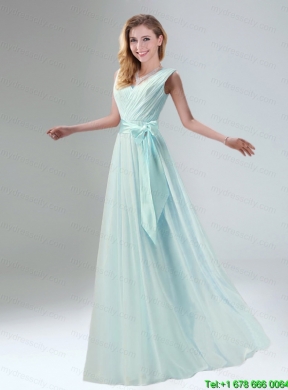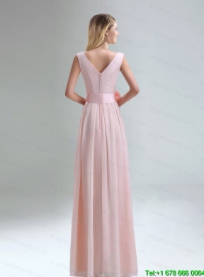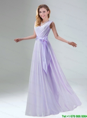 Fashionable Belt Ruching Chiffon Mothr of The Bride Dress with Bowknot