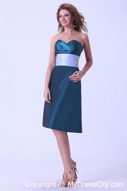 You're ready for the red carpet when you arrive in this amazing evening dress. A stunning knee length Peacock Green dress featuring a sweetheart neckline and ruched bodice. Dramatic touches include wide waistband design and sexy low cut bodice. Soft and sleek taffeta will give your skin intimate care and look beautiful. A hidden zipper makes for easy off and on and secures the dress in place.