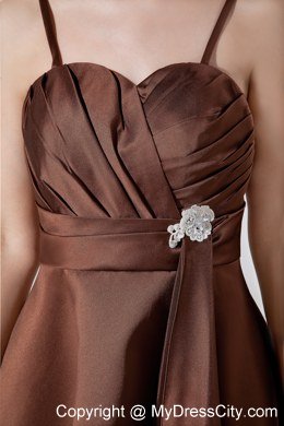This brown bridesmaid dress is youthful and chic. Thus, this gorgeous prom dress will conquer countless hearts of students. The ruched bodice is defined by sweetheart neckline and a pleated waistband with a beaded bowknot by the side make you feel you are fairy dancing in the flowering shrubs. Thin trap design with zipper closure and cute skirt, this prom dress is perfect for party, cocktail and banquet.