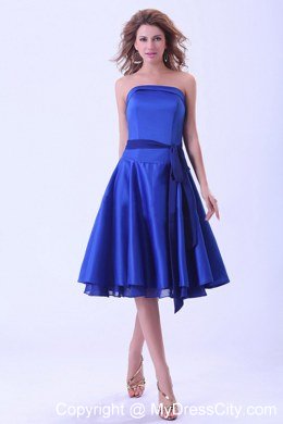 This short bridesmaid dress is made of modest satin fabric and features a strapless bodice and a straight neckline. The waistline is curved with a cute sash and bow. The A line skirt flatters most figures and the tea length will show off your sexy legs. A zipper up closure secures the dress in place. Just a cute little dress for your right choice
