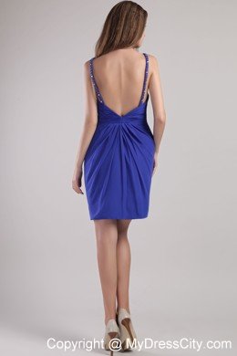 Simply gorgeous this blue short dress is!The whole dress is adorned with exquisite ruchings and the bodice features straps V-neckline.A zipper up back completes this stuning chiffon design.The open back add sexy!This mini-length dress is the best choice to conture your slim figure.