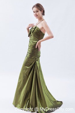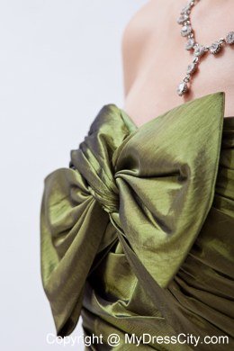 Put a little sparkle in your formal event with this gorgeous dress. It has a strapless neckline with a bow decorated on the bust of the ruched bodice. The bodice hugs your frame, extending well past the hips where the skirt flares slightly from the body, creating a beautiful silhouette when worn. A zip closure in the back secures the dress in place and makes for easy off and on.