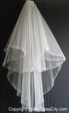 Product Name: Embroidery and Beading Decorate Tulle Two Layers Wedding Veils