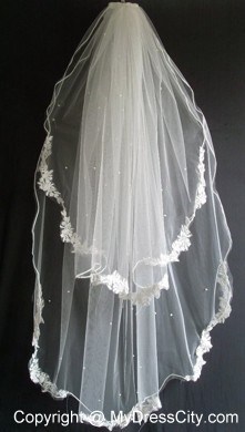 Product Name: Lace Appliques And Beading Decorate Tulle Wedding Veil