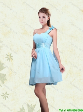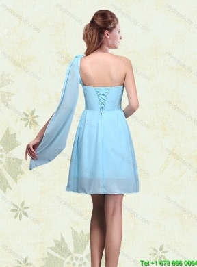 2015 Fall A Line Ruching Chiffon Elegant Dama Dresses with One Shoulder