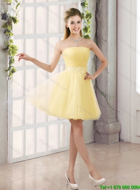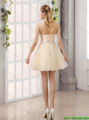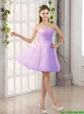 2015 Summer Appliques Strapless A Line Mini Length Pretty Dama Dress