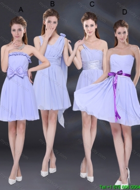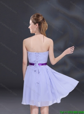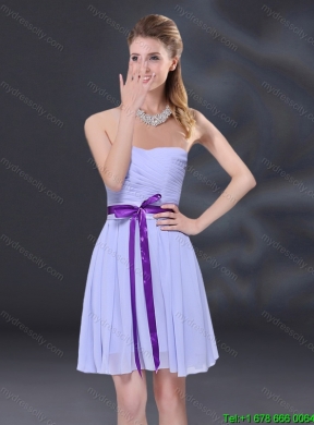 2015 Summer Ruching and Belt Chiffon Top Seller Dama Dress in Lavender