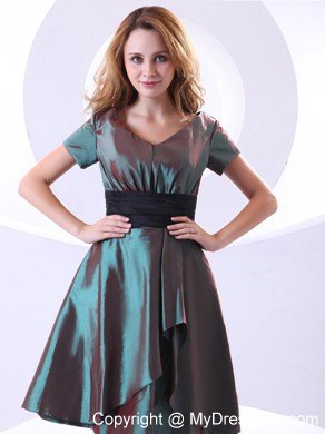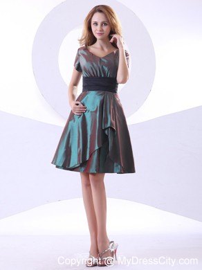 This short dress is a chic look for any occasion. Get the party started in this fun, vivacious prom dress. The sleeves design with a v-neck neckline bodice made in two contrasting colors makes a lasting impression. The exquisite ruched waistband adorns the midsection. The whole short skirt is made unique that makes you stand out in the crowd!