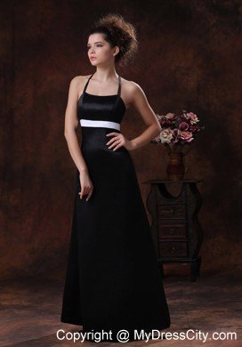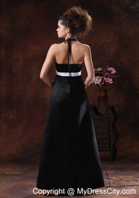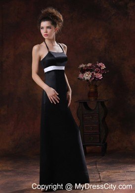 Simple but gorgeous this black bridesmaid dress is! The fitted bodice is adorned with a halter-top neckline. The white band adorns your curve. The skirt in stunning fabric flows freely to the floor to contures your slim figure. A zipper up back completes this wonderful design.In fact,the simple ones will leave long last impression in contrast and you will be the shiny star in any occasion you attend. Silhouette: Column / Sheath