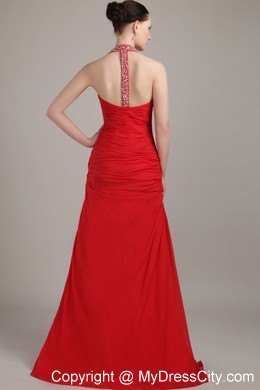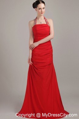 This lovely satin evening gown has a lot of design elements that make it quite interesting and unique. The bodice features a halter-style strap that fits around the neck, an exposed back and pretty pin tuck pleats. The pleated bodice may highlight your slim figure. The straight skirt features lots of ruched details. A hidden zip closure secures the dress in place and makes for easy off and on. Chic, elegant and modern � perfect for any event or occasion on your calendar.