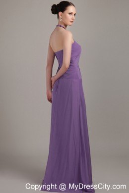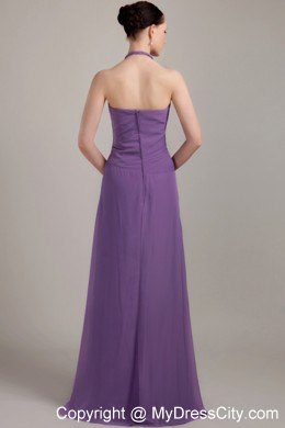 Simple but gorgeous this purple prom dress is!The strapless bodice is adorned with a halter-top neckline and exquisite ruchings.The skirt in stunning fabric flows freely to the floor to contures your slim figure. A zipper up back completes this wonderful design.In fact,the simple ones will leave long last impression in contrast and you will be the shiny star in any occasion you attend.