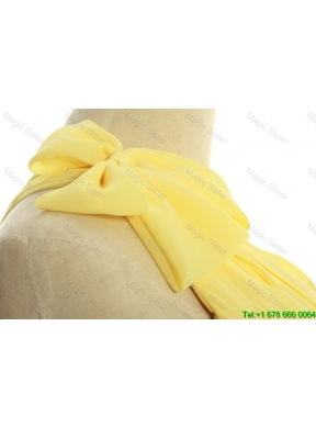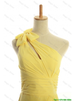 Classical One Shoulder Long Yellow Prom Dresses with Bowknot