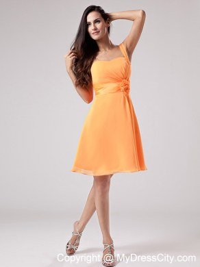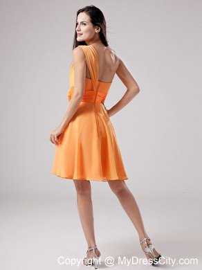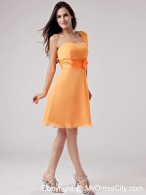 Simple but elegant! This dress features sweetheart neckline with a ruched one shoulder strap. The fitted bodice is gathered together with a hand made flower and sash. The knee length skirt is elegant and sexy to show your beautiful legs and wonderful shoes. Zipper up back completes the whole design.