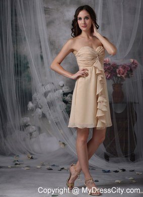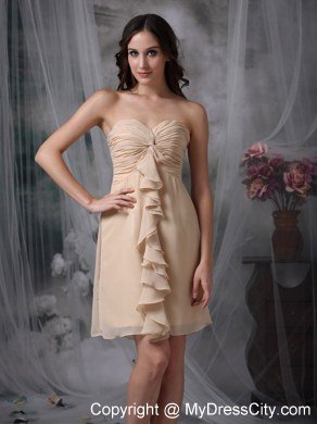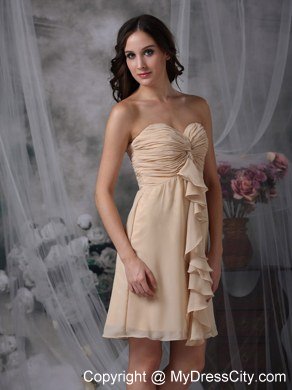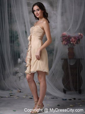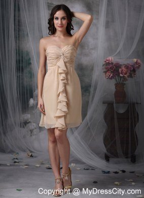 Strapless dresses are one of the sexier styles on the market today. This one features a strapless bodice with sweetheart neckline. The ruched details and the ruffles on the bust adorn the dress throughout and catch the light in a lovely way. The short skirt complete a beautiful shape to complete the dress.