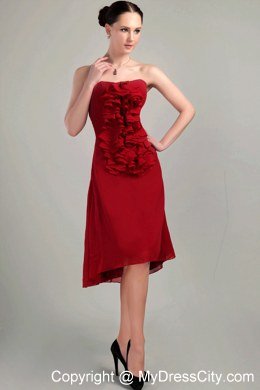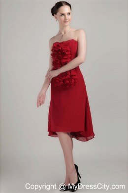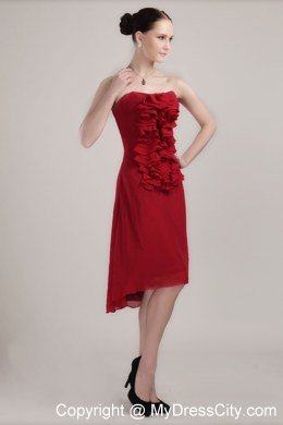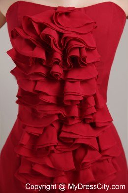 This red prom dress is so simple but stunning that will let you attract the public.The comfortable, strapless bodice feature a straight neckline and laryers of ruffled decoration that just looks like flowers throughout.The knee-length skirt flows freely and a zipper up back comnpletes this wonderful design.