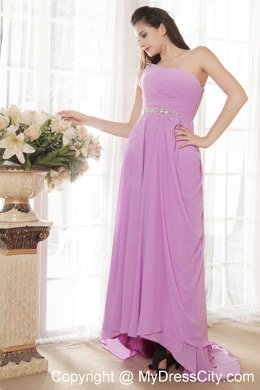 Easy breezy dresses are a summer staple. They are fashionable comfortable and look great on. This one is made from a lovely chiffon fabric and features a gathered off one shoulder bodice with rhinestones accent. The light and airy skirt is asymmetrical featuring a ankle-length hem in the front and a longer hem in the back. The hidden zipper in the back of the dress secures it in place and makes for easy off and on. So versatile and so pretty � use it as a base to create a look all your own!