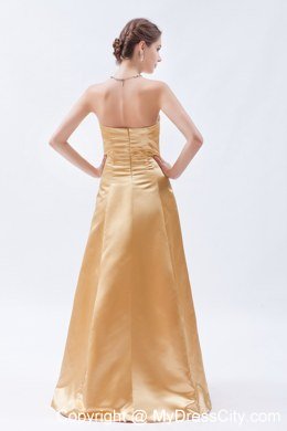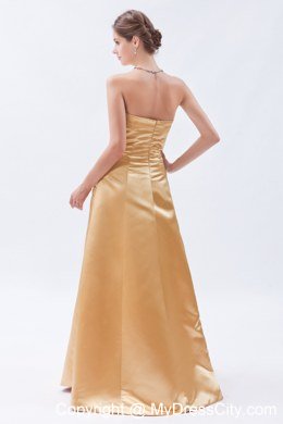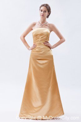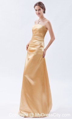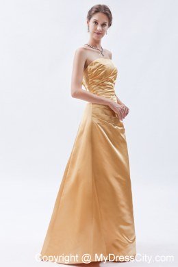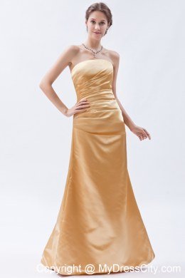 There's nothing like an elegant evening gown to make a woman feel beautiful. This charming yellow dress can certain accomplish that. It features a gorgeous strapless ruched bodice. A corset style closure in the back cinches the dress and secures it on the body.