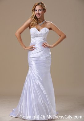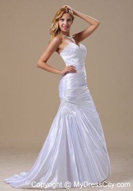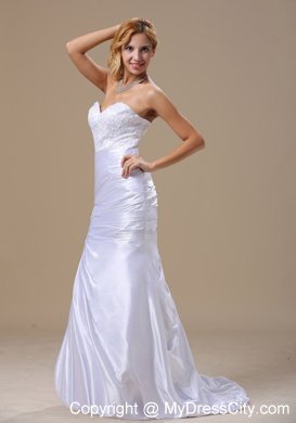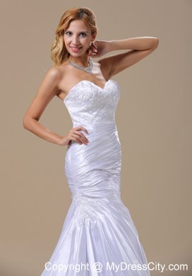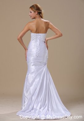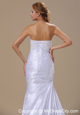 Your are still wondering how to make your wedding unique, first to start with this glomous and eye-catching gown.The strapless bodice features figure-hugging sectional construction and lovely appliques and bonings. The mermaid skirt with ruching is so smooth and elegant that extends into a lovely brush train in the back. The open back can show your beauty and a lace up in the back completes this fabulous design!