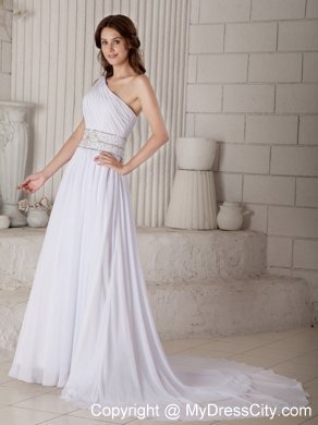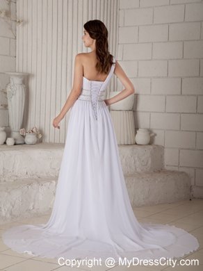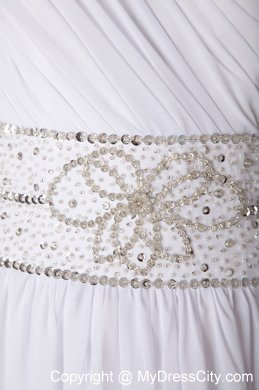If you like the idea of dressing up without simplicity! This one is a nice example. It has a subtle sweetheart neckline covered by a layer of exquisite lace with sleeves. The ruched waistband is sticked by a big gorgeous flower shape applique accent on the waist side. The full-thigh hem on the skirt is perfect for both style and comfort without being a burdensome. The back of the dress has a lovely bow flower flowing down to the floor, which creates a wonderful look in the design.