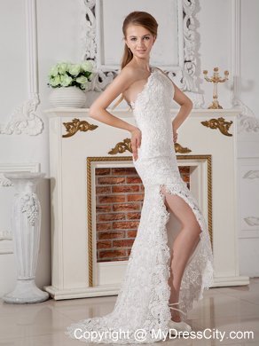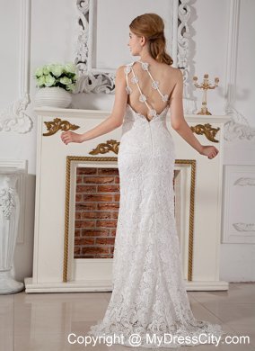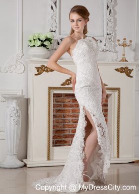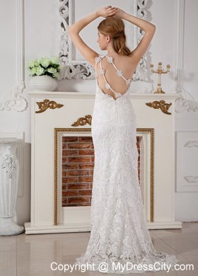 Lace is one of the most favorite fabric on market today. This one is just what we mean. It is a perfect combination of modern and sexy. The whole design is adorned with lace, while the wide strap divides into three spaghetti strap on the back that can show the beauty of your beautiful back. The floor length skirt with a sexy slit in the rightside flows freely to show your long legs and creates a brush train. A zipper up completes the design, while you will light up the day.