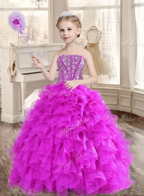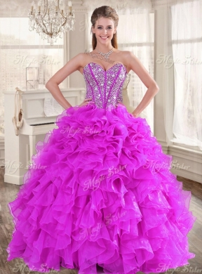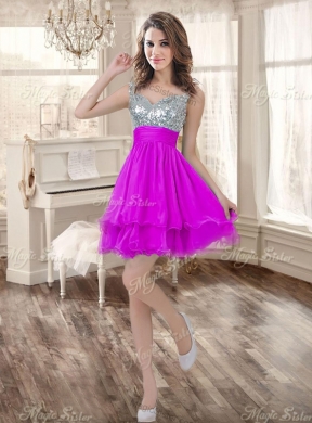 Visible Boning Fuchsia Sweet 16 Gown and Sequined Dama Dresses Beaded and Ruffled Mini Quinceanera Dress