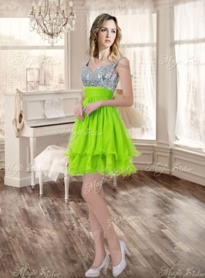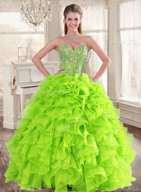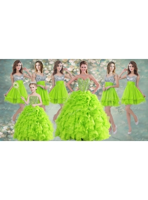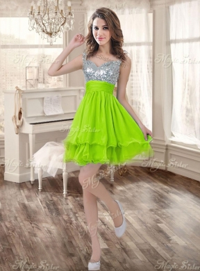 Visible Boning Yellow Green Quinceanera Gown and Sequined Short Dama Dresses and Beaded and Ruffled Mini Quinceanera Dress