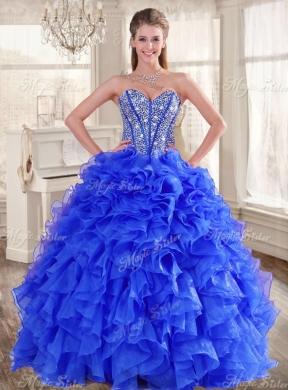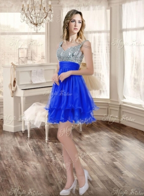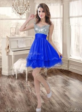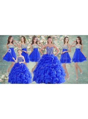 Big Puffy Beaded Blue Quinceanera Dress and Sequined Short Dama Dresses Ruffled Mini Quinceanera Dress